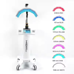 Red and blue light treatment system using United States high quality LED purity over 99% genes of biological electromagnetic wave sources, with special optical signal transmission technology in the world, and non-thermal effects. During treatment period, may combination contains special photographic ingredients of high nutrition photosensitive collagen, can fast effective of import subcutaneous tissue and are absorbed by red grains of cell, and produce most efficient of light of reaction–enzyme promoting reaction, thus improving the activity of cells and promoting the metabolism of cells. Make the skin to secrete many collagens and automatically fill in fibrous histiocytomas, while increase peritoneal macrophages bacteria ability of white cell , so as to achieve healing, tender skin, whitening, acne, antioxidant effect, ideally suited for sub-healthy and dry, allergic skin, and facial nerve numbness, spastic patients.